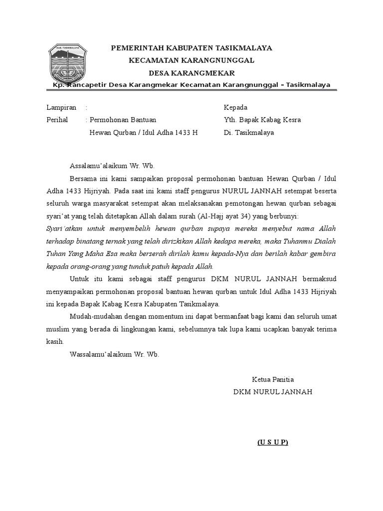 Penjelasan aji bandung soal permohonan bantuan dana di garut. Agar lebih indah dan menarik penawarannya, buat tampilan infografis contoh surat penawaran hewan kurban. Laporan pertanggung jawaban panitia phbi idul adha 1437 h. Demikian artikel dari kami mengenai proposal permohonan hewan qurban idul adha 1434 h. Contoh proposal permohonan hewan qurba n kali ini admin postingkan contoh proposal permohonan hewan qurban silahkan simak di bawah ini.